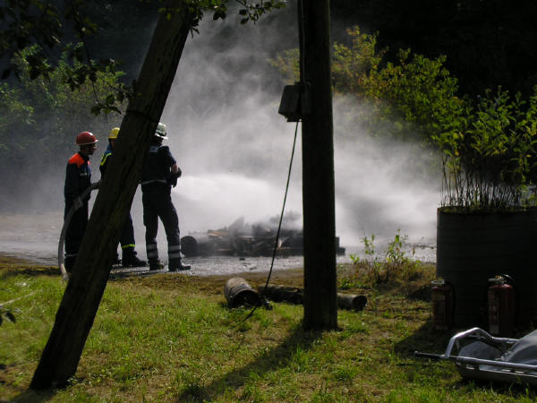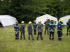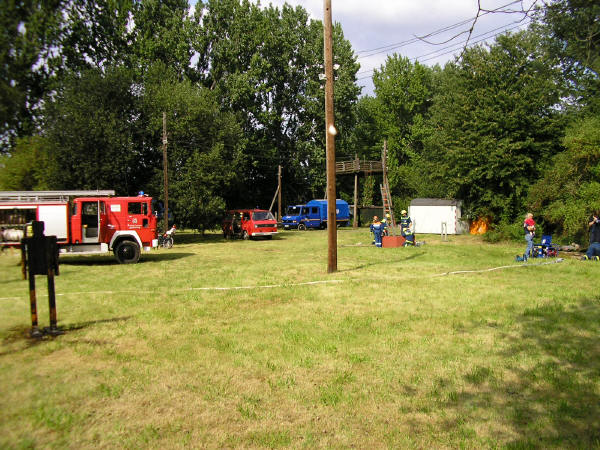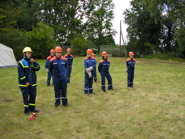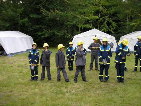 Dreitagesübung 2004 Die Jugend macht’s vor! Unter diesem Motto trafen sich vom 13.08.-15.08. ca. 30 Jugendliche und Betreuer der Jugendfeuerwehr Einbeck und des Jugend THW Einbeck zu einer Dreitagesübung. Stattgefunden hat diese auf dem THW Übungsgelände in der Schlachthofstraße. Am Freitag erfolgte die Anreise der Jugendgruppe. Nach dem Zeltaufbau und einer Stärkung fand das erste Kennen lernen der Kids statt. Es wurden verschiedene Spiele, z.B. das „Blinzel“ Spiel, gespielt. Danach ging es zu vorgeschrittener Stunde zu einer Vorführung der besonderen Art. Jugendfeuerwart Florian Domeyer hatte aus den Beständen der Feuerwehr Einbeck ein so genanntes Impuls Löschgerät, das IFEX, mitgebracht. Dieses Gerät komprimiert bei 25 bar Druck 1 Liter Wasser so stark, das er mit ca. 400 km/h auf das brennende Objekt geschossen wird. Wer von den Jugendlichen sich traute konnte selbst einmal das Gerät unter fachkundiger Aufsicht ausprobieren. Diese Vorführung war in der Dämmerung eines der Highlights der Übung. Am Samstagmorgen ging es dann richtig los. Nach einem üppigen Frühstück wurden die Kids in gemischte Gruppen eingeteilt und an verschiedenen Stationen in THW- und Feuerwehrtechnischen Abläufen unterrichtet. Z.B. wie ein dreiteiliger Löschangriff aufgebaut wird oder eine Schmutzwasserpumpe in Betrieb genommen wird. Das Aufstellen eines Dreibaums zur Rettung von Personen aus Schächten oder Gruben durfte auch nicht fehlen. Die Zeit ging schnell vorbei und nach dem Mittagessen und ein bisschen Freizeit wurde zur Zugübung gebeten. Die Einzelnen Gruppen der Fahrzeuge, GKW 1 (THW), LF 8/schwer (Feuerwehr) und KDOW (THW), wurden durch THW Jugendbetreuer Rene Kempf und Jugendfeuerwehrwart Florian Domeyer eingeteilt. Jetzt konnte es losgehen! Die Fahrzeuge wurden in den Bereitstellungsraum gefahren und nach einer Weile abgerufen. Dem eingesetzten THW Jugend Zugführer, Dominik Schlünder, wurde folgendes Szenario mitgeteilt: „Explosion eines Gastanks, ca. 50m² Wald und Wiese brennen, eine Person brennt, eine Person im Kellerschacht vermisst, eine Person unter herumfliegenden Trümmern begraben“. Die Aufgaben wurden jetzt von den einzelnen Gruppen abgearbeitet. Die Gruppe LF 8/schwer nahm die Brandbekämpfung vor. Als erstes wurde die brennende Person gelöscht und dann wurde mit der Bekämpfung des Flächenbrandes begonnen. Die Gruppe GKW 1, befreite derweil mittels Hebekissen die verschüttete Person und brachte diese zur Verletzten-Sammelstelle. Mittels eines Dreibaums wurde die vermisste Person aus dem Kelleschacht gerettet. Vorher musste allerdings ein geborstenes Wasserrohr mit Holzkeilen geflickt werden. Ca. 2 Stunden später war die Übung vorbei. Nach einem deftigen Abendessen und genügend Freizeit am Lagerfeuer fielen dann alle erschöpft in die Betten. Sonntagmorgen wurden die Zelte abgebaut und es ging in Richtung Heimat. Allen Kindern, Jugendlichen, Betreuern und Helfern hat diese Übung besonderer Art soviel Spaß gemacht und Wissenswertes vermittelt, das eine Wiederholung auf jeden Fall ansteht. Dankeschön an alle eingesetzten Kräfte! Diese Übung ist in Zusammenarbeit von Jugend THW und Jugendfeuerwehr entstanden.