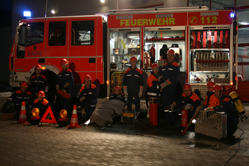 Das ist bei uns wörtlich zu nehmen. Bei uns lernt man alles Rund um die Feuerwehr. Was in einem Feuerwehrauto so alles drin ist und wie man es richtig benutzt. Selbstverständlich darf fast alles auch selbst, unter Aufsicht, benutzt werden. Wie lösche ich ein Feuer am schnellsten? Wie bekomme ich einen verunfallten PKW auf? Was ist Gefahrgut? Wie sichere ich eine Einsatzstelle ab? Was tue ich bei einem „Unfall“, kleinen Verletzungen oder wie setzt man einen richtigen Notruf ab? All dies und noch viel mehr wird in den einzelnen Dienststunden von den Betreuern, die alle selbst Feuerwehrmänner sind und über Fachweiterbildungen verfügen, vermittelt. Einmal im Jahr nehmen wir an den Jugendfeuerwehrwettkämpfen oder dem Stadtpokal teil. Natürlich kommt bei uns die Freizeit auch nicht zu kurz. Wir nehmen jedes Jahr an einem Zeltlager mit anderen Jugendfeuerwehren teil, führen sportliche Turniere untereinander durch oder spielen einfach mal Fußball gegen die „großen“ Feuerwehrleute!